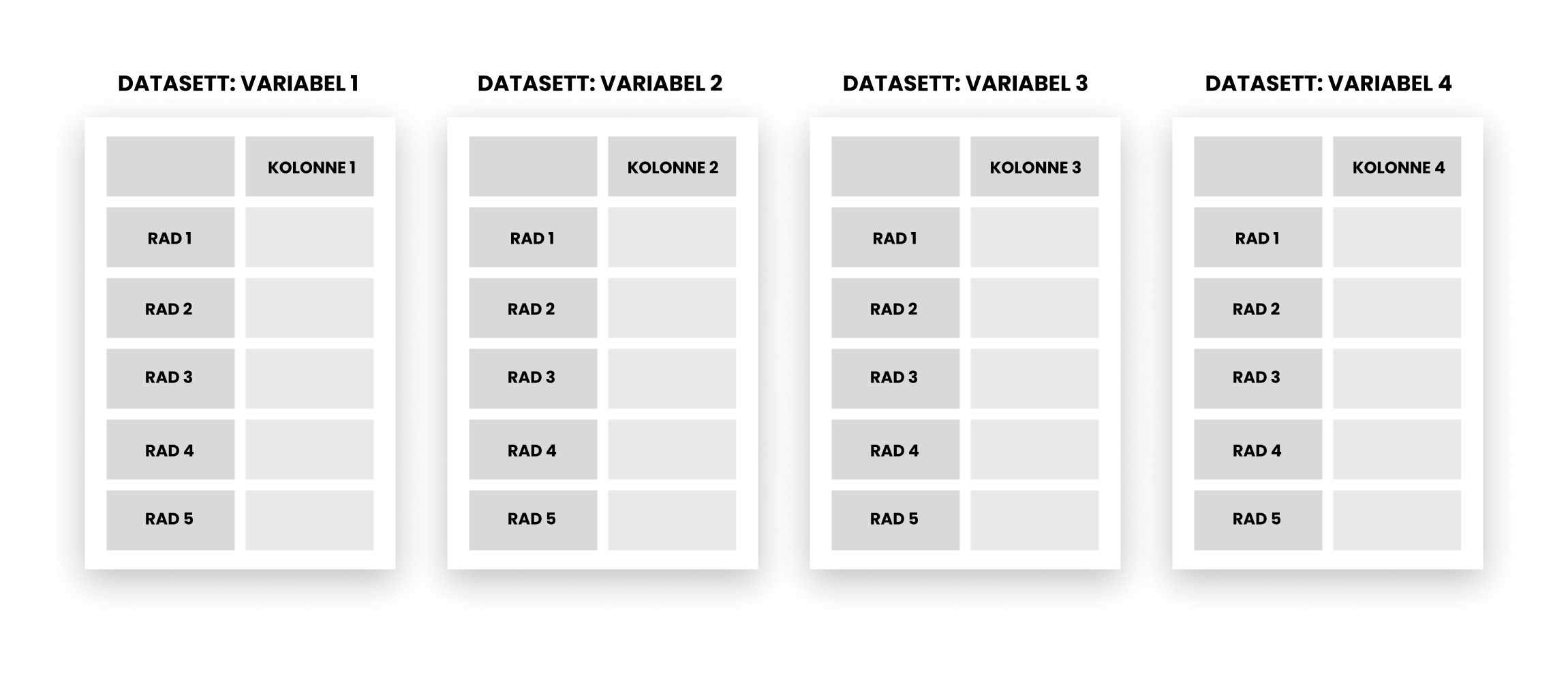 En vanlig måte å strukturere data på er i datasett. Den mest kjente er i form av tabeller: