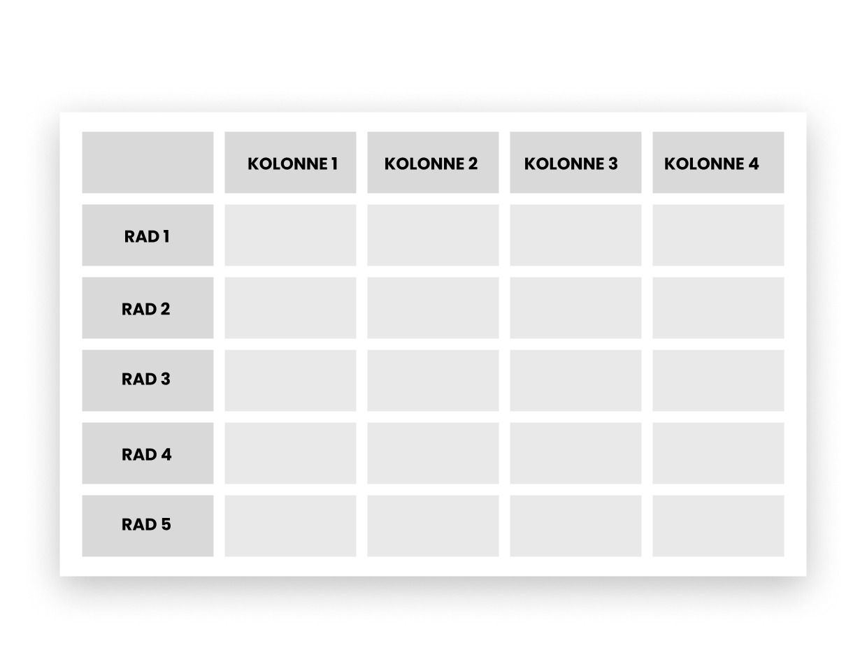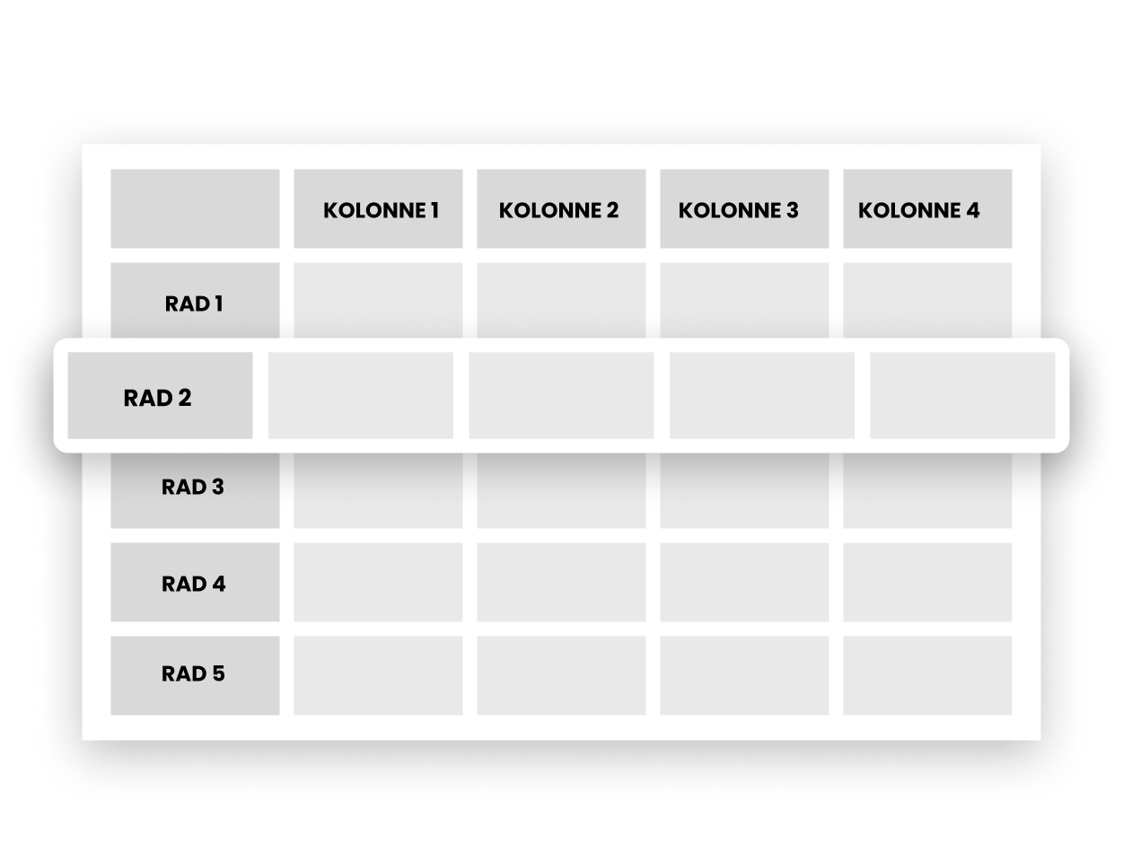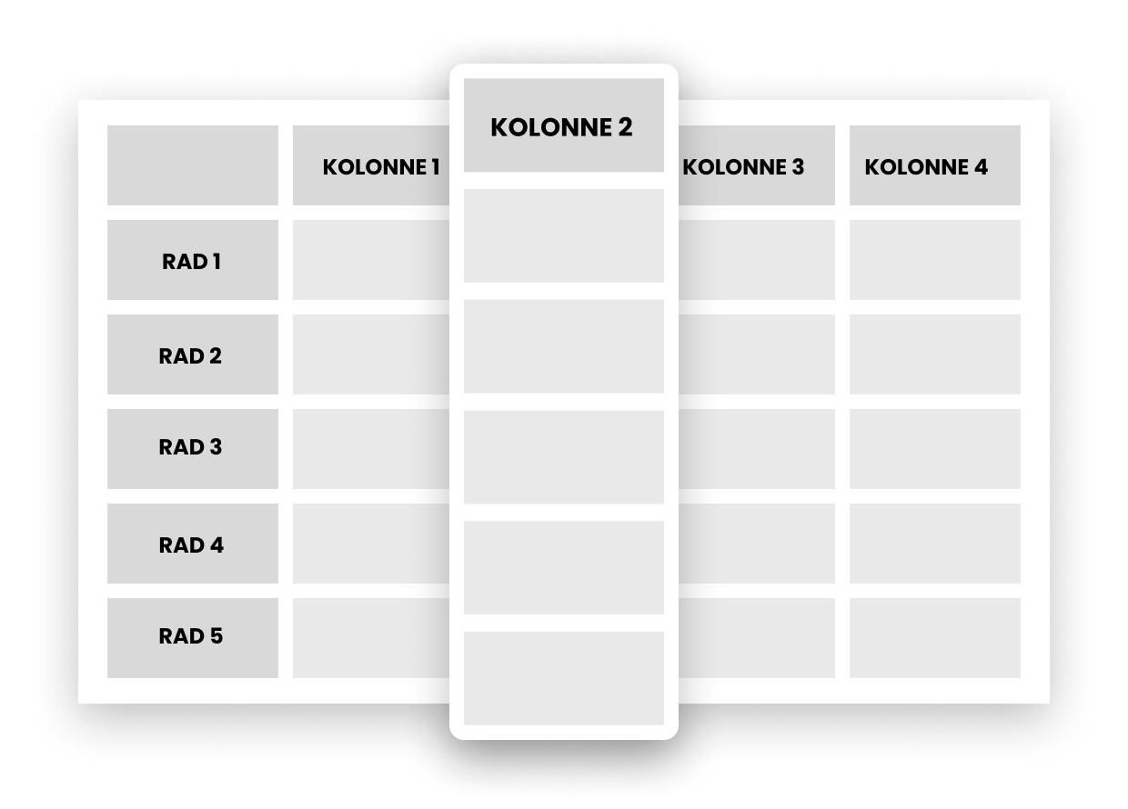 I en tabell beskriver kolonner ulike aspekter av en enhet.